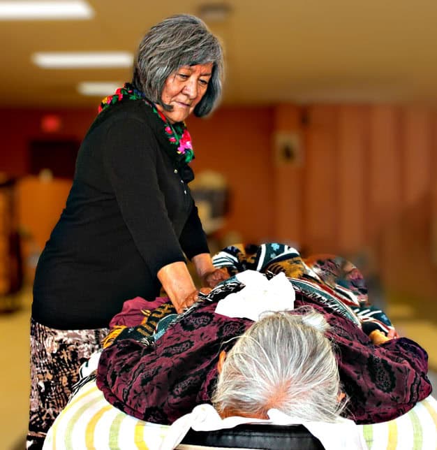 We hope you’ll join us at Elder Wellness Week, our week-long free holistic clinic! The clinic pops up at senior centers around the Black Mesa/Big Mountain area, as well as at the Stone Cabin at the Smiths’. At a typical clinic day, elders and youngsters can get supportive teas and supplements from an herbalist, receive a massage or energy work to help soothe body pain, soak their feet with medicinal herbs, or get an acupuncture treatment. Clinics days are very social, and we serve herbal tea in addition to meals offered by our senior center and chapter house hosts. On the Stone Cabin clinic day, we cook a big pot of stew and other food, tea and coffee, and community members often bring dishes to share as well.